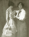 Lucile_and_modelHer first major show in 1904, “Gowns of Emotion” made explicit the link between feeling and fashion. She looked back to the idealized past, naming dinner dresses in honor of Nell Gwynne, mistress of Charles the Second, and Marie Antoinette.  Lucy was one of the first designers to market fragrances with fashion, selling blended perfumes at her salons. She also sold a full line of accessories manufactured by others. She opened in New York in 1910, and Paris in 1911.  She wrote a monthly column in Harper’s Bazaar “The Last Word in Fashion”, beginning in February 1913.  (Left, Lucile with a model, 1916, courtesy Randy Bryan Bigham.)