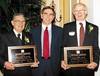 Cibinic joined the GW faculty in 1963, after stints working for the Navy Bureau of Aeronautics and then American Machine & Foundry. In 1964 he published Cost Determination, the first book ever written on what would become the important field of government cost accounting. With his long-time colleague Ralph Nash, he published the first great government contracts casebook, Federal Procurement Law, and he wrote or co-wrote several other books, including Formation of Government Contracts, Administration of Government Contracts, and Competitive Negotiation. He was co-editor of the popular and authoritative Nash & Cibinic Report.  Although he continued to teach, he retired from GW in 1993.  In 2002 he and Nash were both honored with University Distinguished Alumnus Awards.  (Photo: Cibinic, left, with GW Dean Michael Young, and Nash).